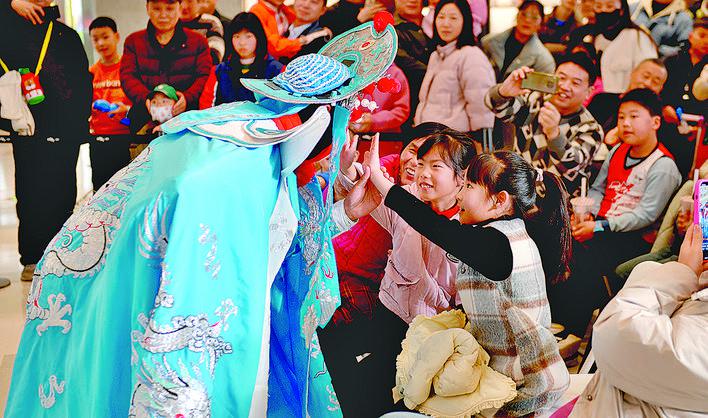 本报讯 戏腔悠扬,曲韵芬芳。11月29日,合肥市“戏曲专场”下基层系列活动走进庐阳万象汇,本次活动以“潮有戏”为主题,旨在让戏曲艺术走出剧场,融入市井、亮相商圈,为市民带来了一场沉浸式的传统戏曲盛宴。