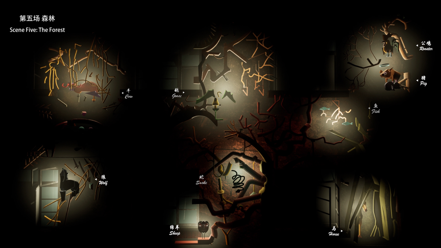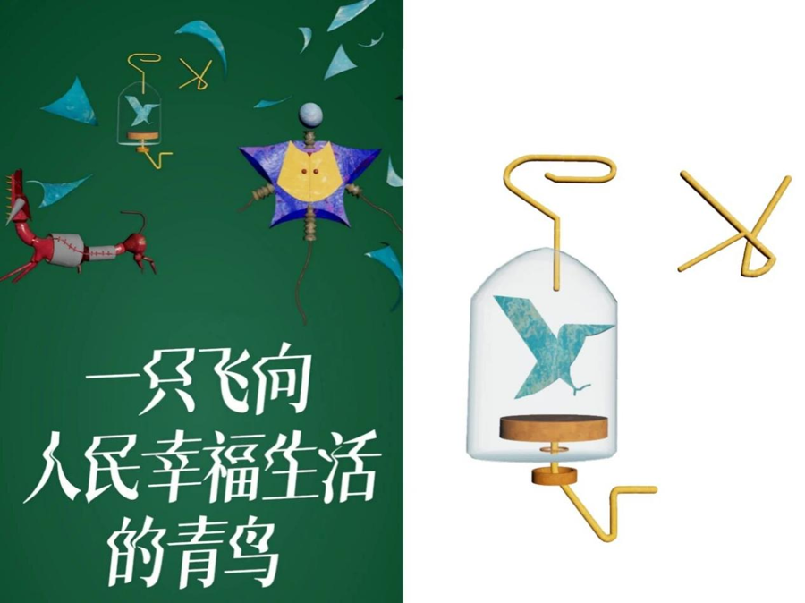数字景观戏剧《一只飞向人民幸福生活的青鸟》作为开幕剧目亮相。作品曾先后入选第14届全国美展和第162届法国巴黎国际艺术沙龙展。德国驻留艺术家、作品总导演陈星宇介绍,该作品源于一个城市更新项目,“当时我看到那堵住宅建筑的外墙,就被震撼到了。五六十年代砌的红砖、斑驳的外立面、空调、雨棚、衣架、晾晒的鞋袜,它就像一个时间的容器,把我们所有的生活记忆收纳其中”。于是,他取材象征主义戏剧《青鸟》,讲述小主人公狄狄和米狄寻找“青鸟”所经历的一段奇幻之旅。“作品由9个场景构成,包括对人物、动物及各类物质的拟态想象。通过戏剧内容与景观环境的融合,我们将符号化的角色演绎映射在建筑立面,形成多重叙事维度的创作实践。”“青鸟”的部分数字角色也作为装置作品展出。