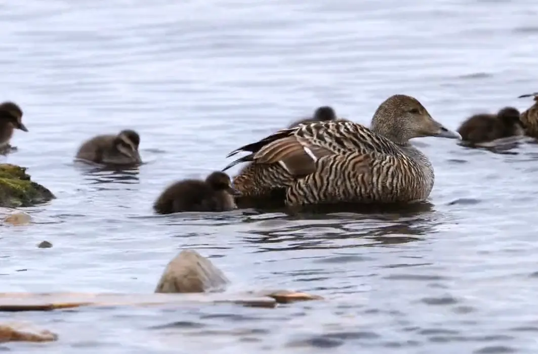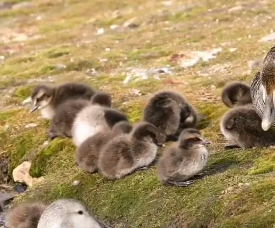 雏鸭破壳后,雌鸭就会带着它们跨越几公里到海边觅食,这段路非常危险,因为它们的巢穴就在海鸥旁边,万一海鸥来袭,幼鸭抵挡不住。