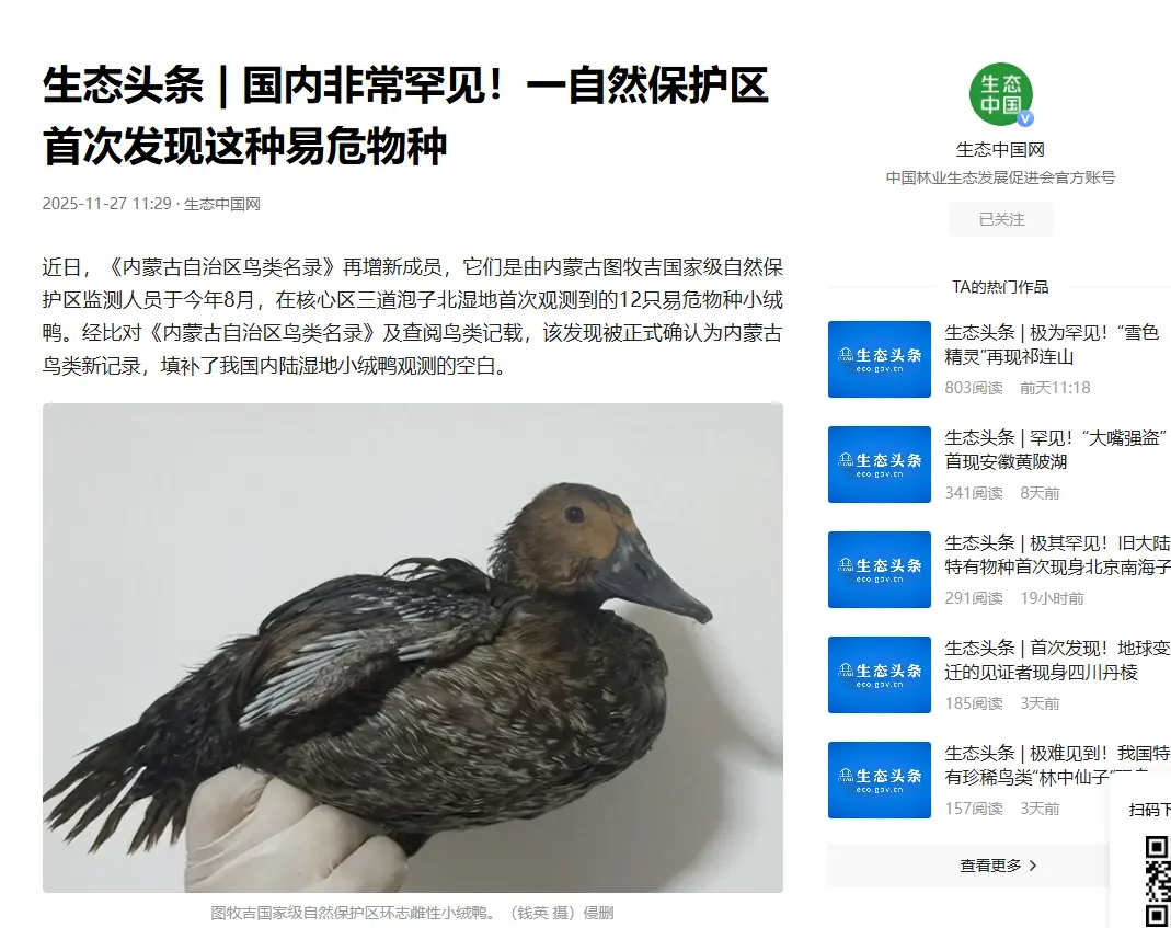 信息来源:生态中国网2025年11月27日《生态头条|国内非常罕见!一自然保护区首次发现这种易危物种》
