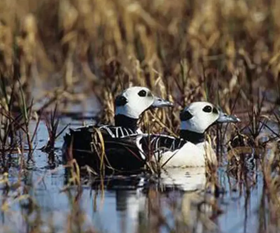 非繁殖期几十只小绒鸭成群活动,他们住在沿海的岩石海湾,尤其偏爱大陆架浅水区 ,因为这里有充足的食物。