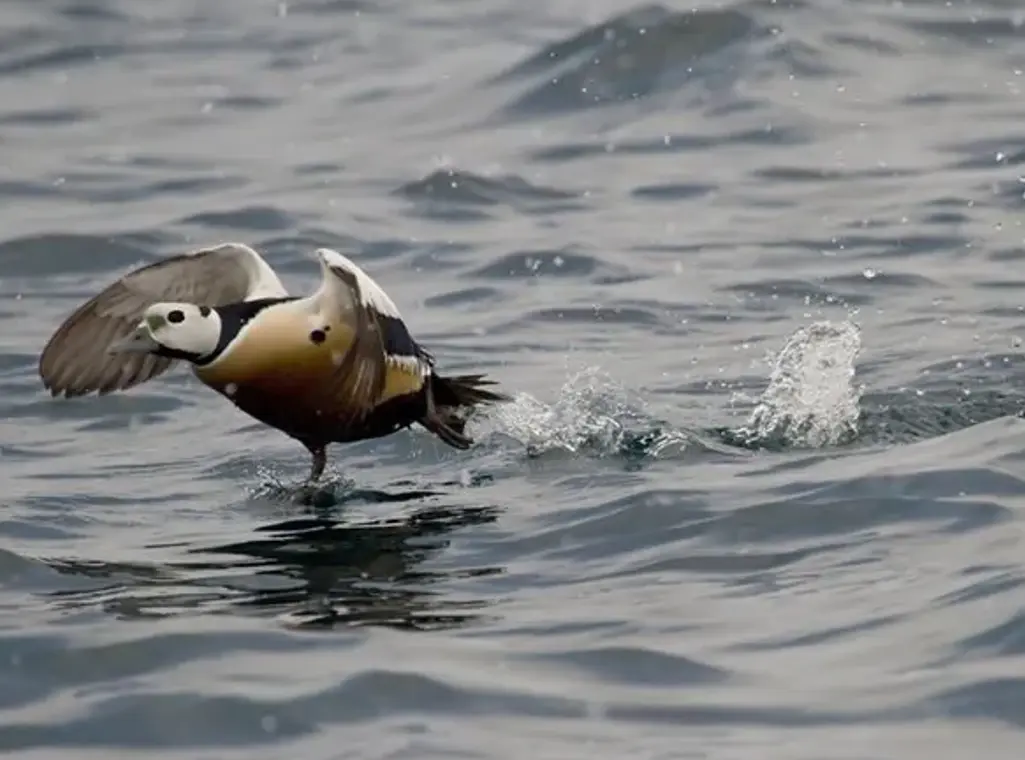 小绒鸭主要分布在北极圈,当地渔民叫小绒鸭为翘尾鸭,因为它们游动的时候尾巴总是向上翘的,能减少水的阻力。