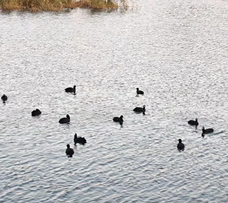 2025年8月内蒙古图牧吉保护区开始了野生动物监测,工作人员发现了一群小鸭子,颜色说黄不黄,说黑不黑,在水里欢快地游来游去。